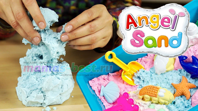 Песок Angel Sand создан по специальным технологиям, что делает его вязким, но совершенно не липким. Его легко убрать после игры не оставив беспорядок. Что для нас, мамочки, немаловажно!))