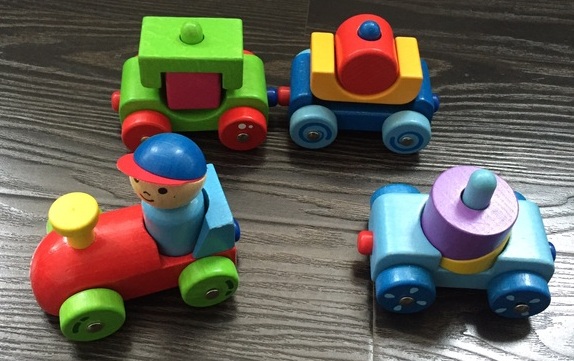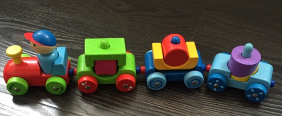 Вот такой паровозик нравится деткам - тут и элементы пирамидки, нанизывать детальки, и вагончики на магнитикам, просто сцеплять даже любят малыши.