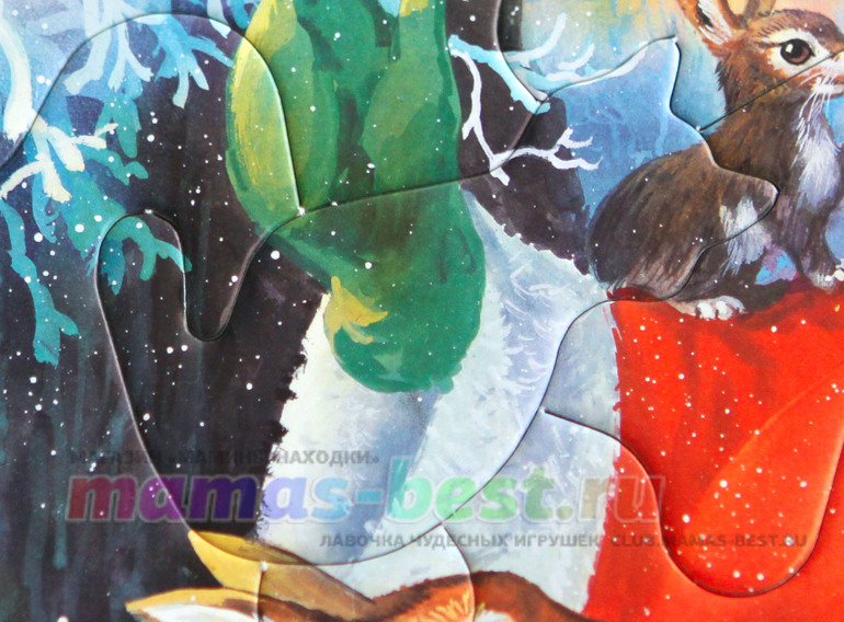 Третья особенность - это многообразие форм вырубки и различные размеры отдельных элементов пазла. Каждая часть уникальна по форме и размеру. Это дополнительная подсказка для малышей, ведь так проще определить место каждого пазла.