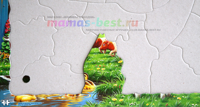 В заключении, хочется сказать, что пазлы Larsen очень высокого качества! Выполнены из плотного трехслойного картона. Ребенок может крепко брать и держать все части и это не приведет к деформации или расслоению деталей. Высокое качество печати не допускает износа и стирания рисунка.