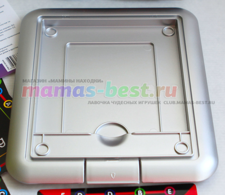 Помещаем карточку с заданием в игровую доску. Сверху защелкиваем игровое поле. Задание будет видно сквозь окошко на игровом поле.