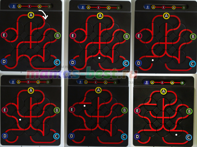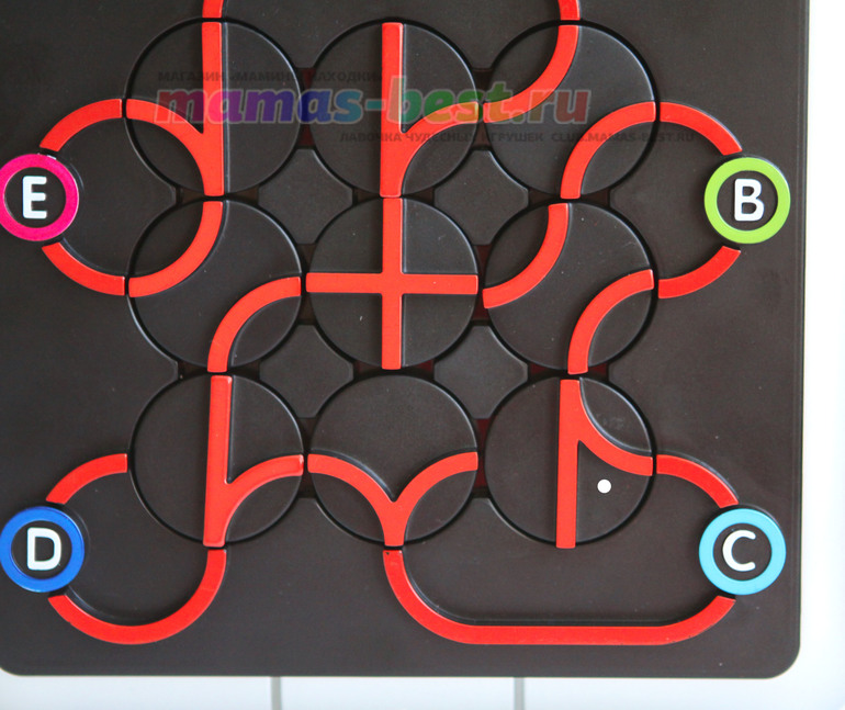 Я указала направление белой стрелкой и белыми точками те детали, направление которых, я меняла. Мы должны проложить путь В - С - Е - А - D.