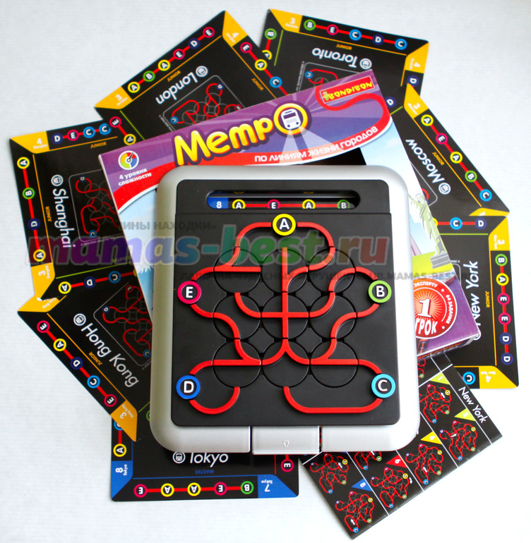 Тайны игрового мира. ОБЗОРЫ, ФОТО, ОПИСАНИЯ, идеи, рекомендацииСегодня мы познакомим вас с увлекательной Логической игрой "Метро" от SmartGames (Bondibon). Теперь вы сами сможете прокладывать линии "жизни" целых городов! Отправиться на станцию Е, минуя пункт С и D или сделать полный круг по кольцевой, решать теперь только вам. Задания как всегда отлично составлены, выбирайте Лондон, Париж, а может быть Токио? Стать машинистом можно с 8-ми лет, так рекомендует нам производитель.