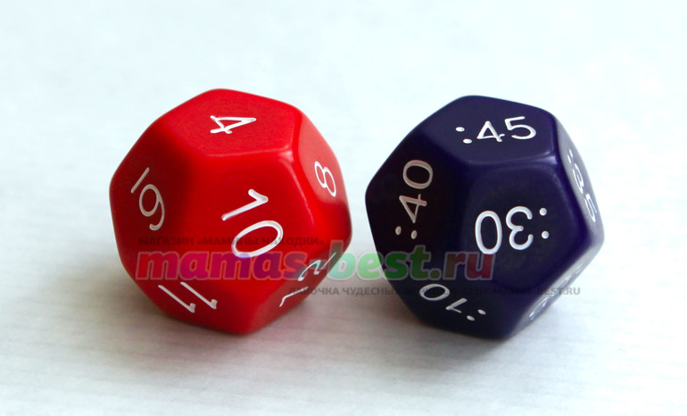 Также в наличие есть кубики с гранями. Красный кубик "часовой", а синий "минутный".