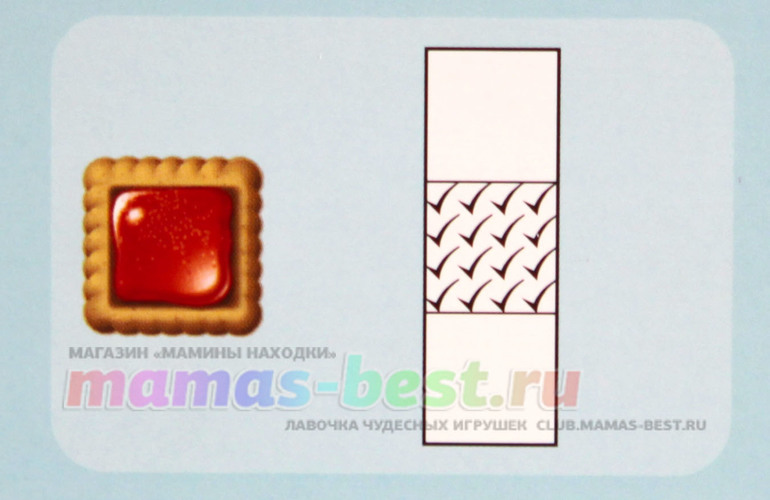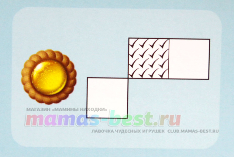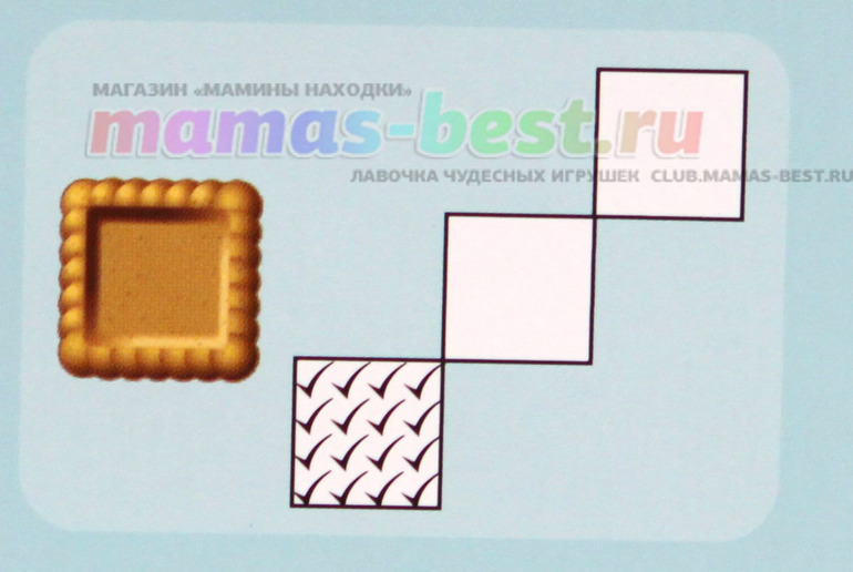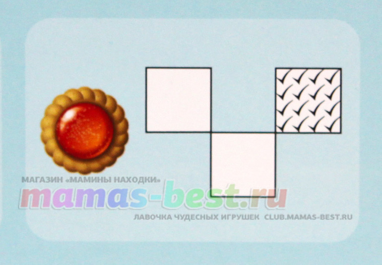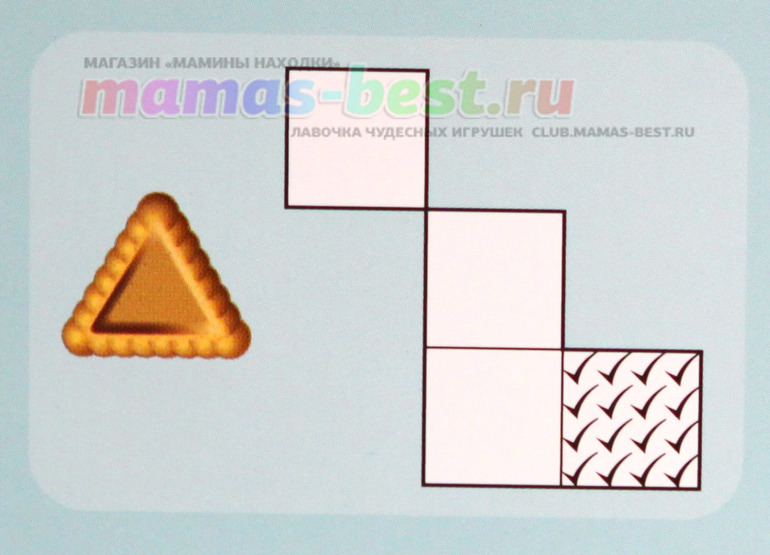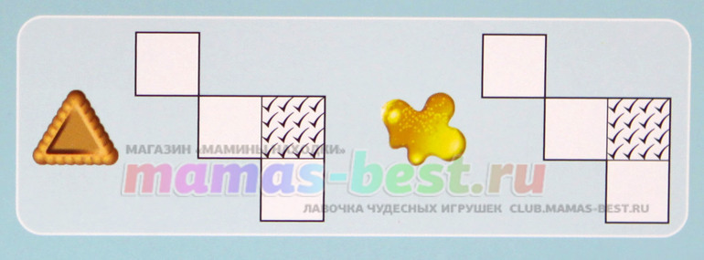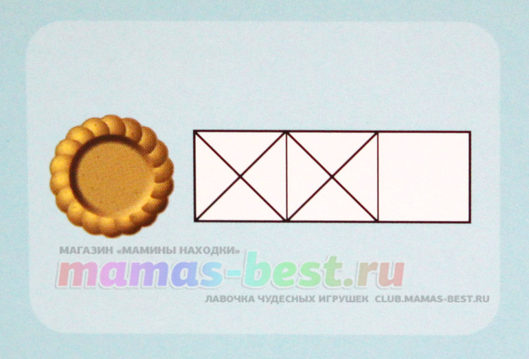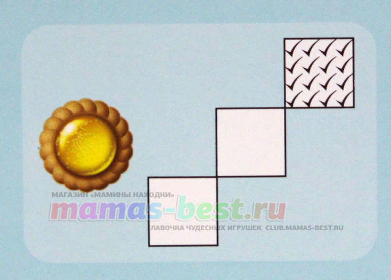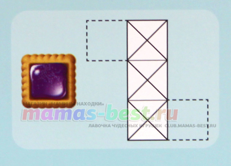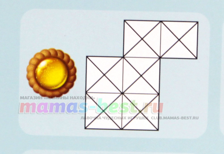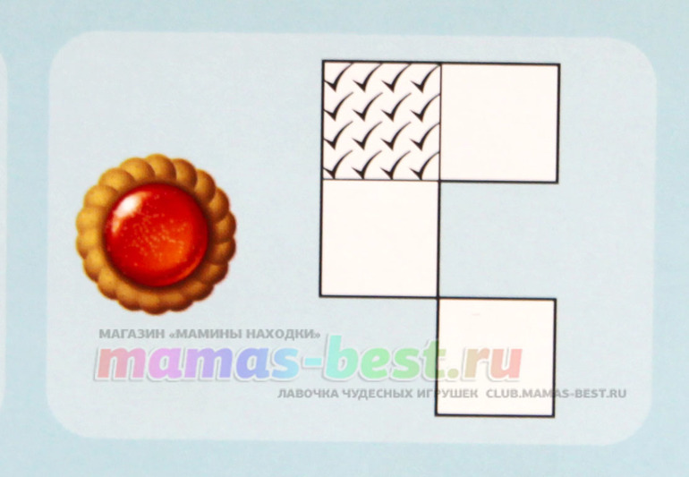 Следующее задание из Первого уровня. Здесь мы уже видим, что некоторые квадраты полностью непрорисованы, тем самым ребенок учится логически размышлять и находить места печенек по визуальным подсказкам.