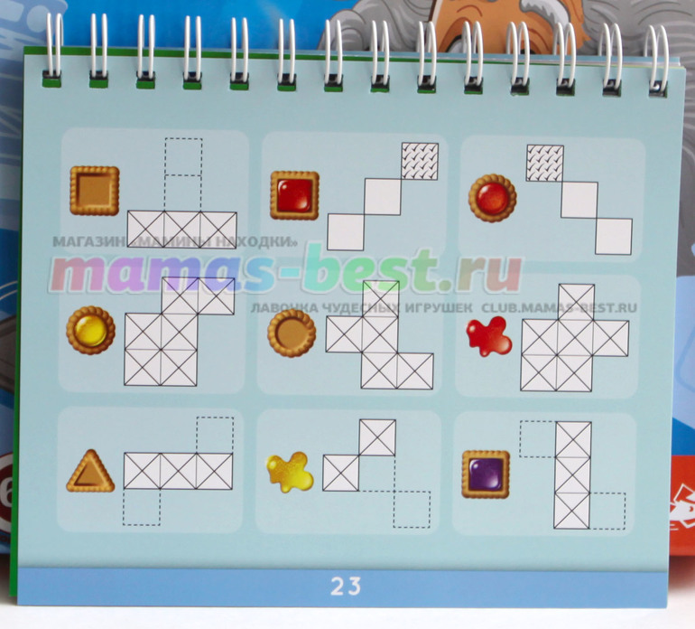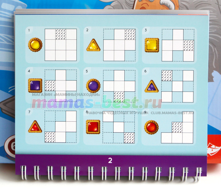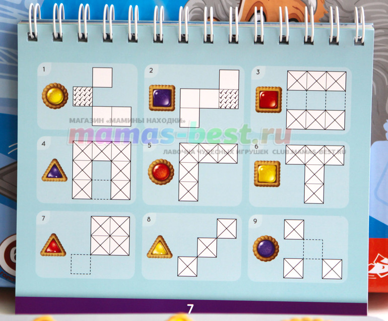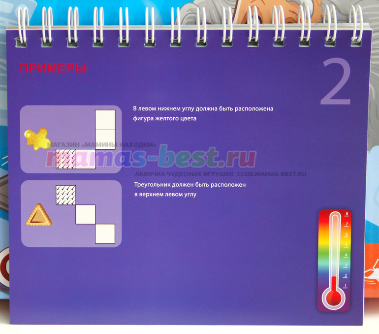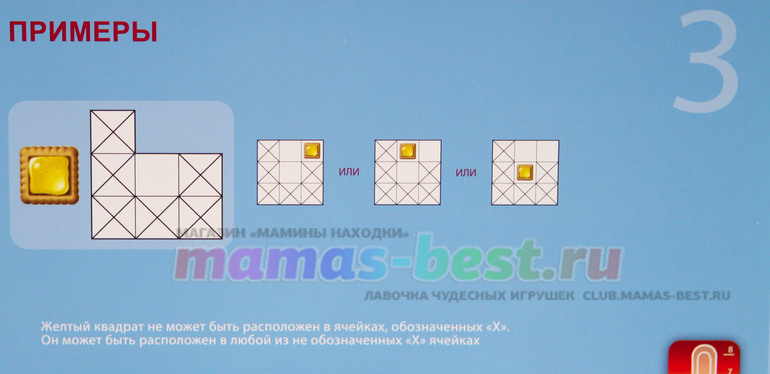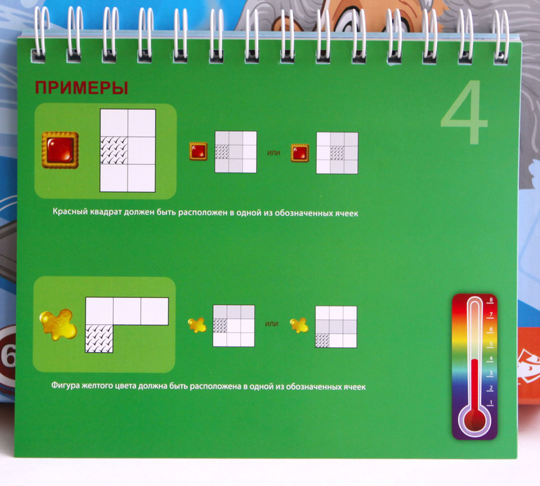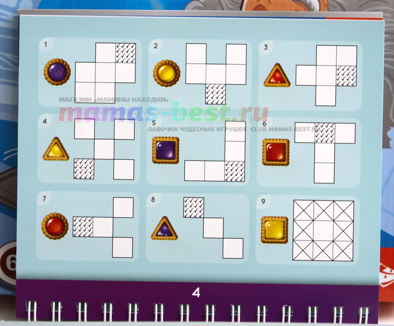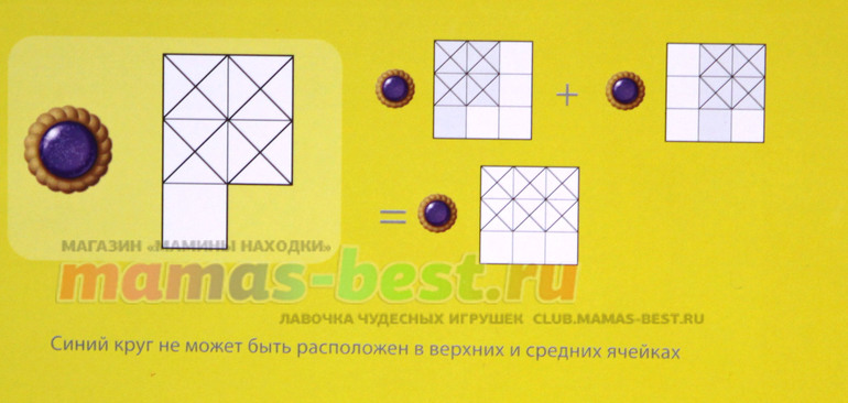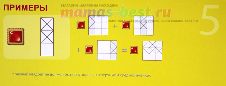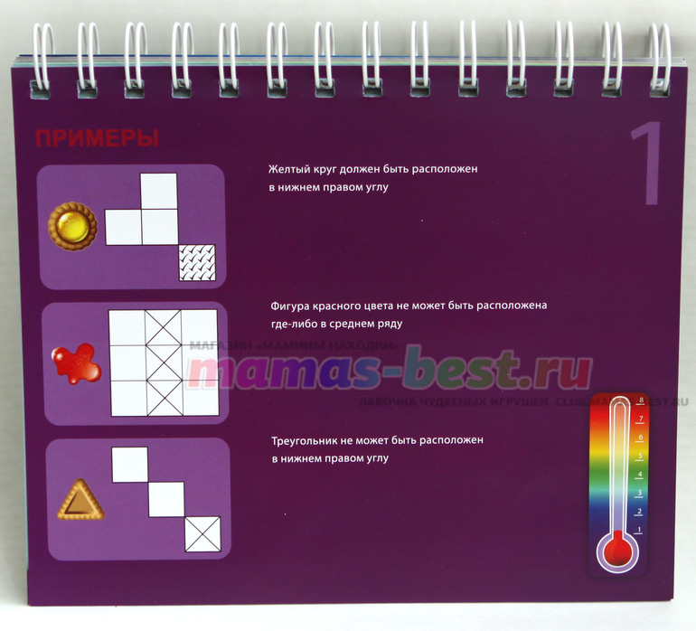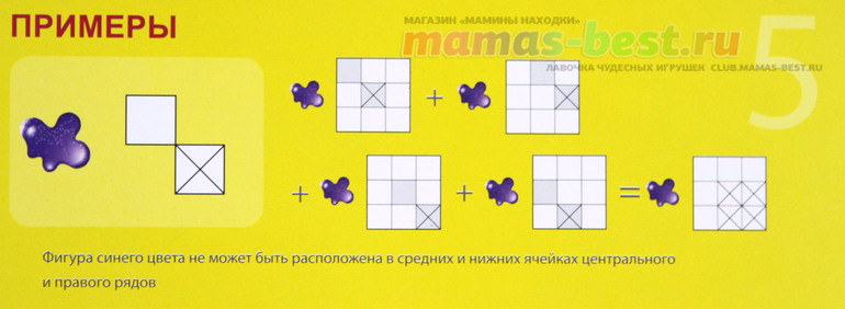 Каждое последующее задание усложняется, но цель остается прежней, расставить фигуры на свои места, используя визуальные условия (подсказки).