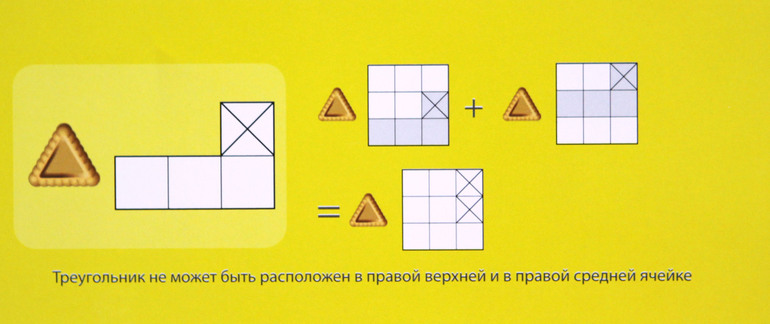 Остались все синие печеньки и один красный треугольник. Исходя из этого условия можно расположить красный треугольник.