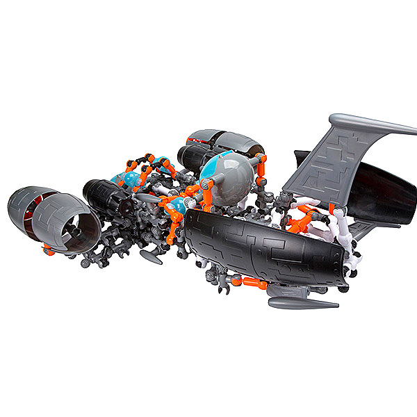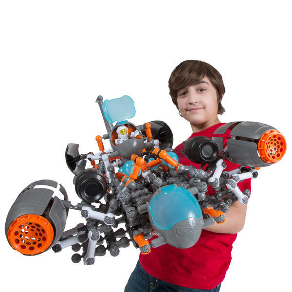 Набор содержит: 337 классических деталей Zoob (304 детали, оболочки двигателей, защитные куполы, хвост, крылья, снаряды, взрывные устройства, опорные балки, кабины, турбины и 2 зубонавта в шлемах.