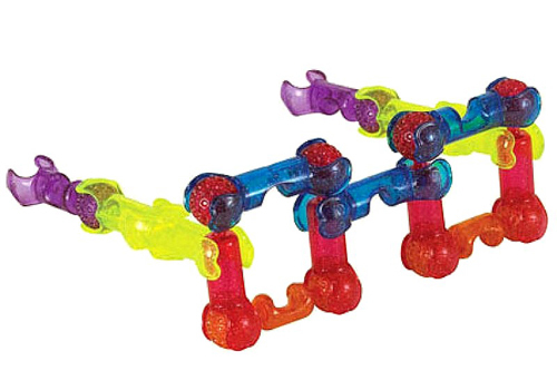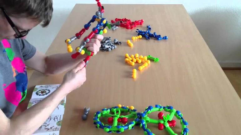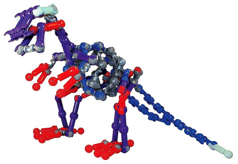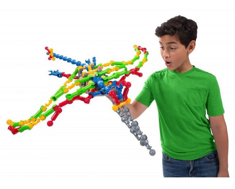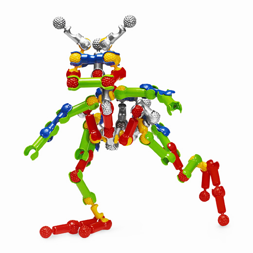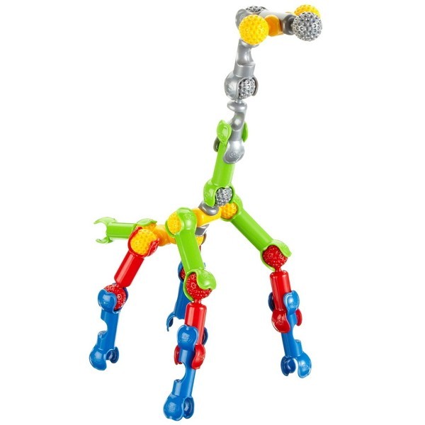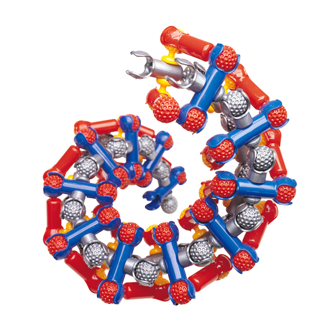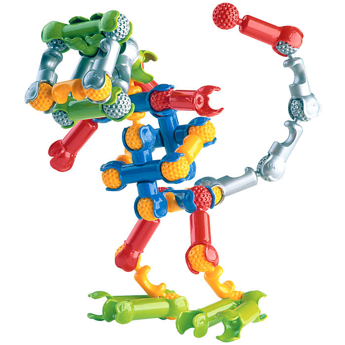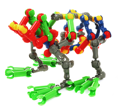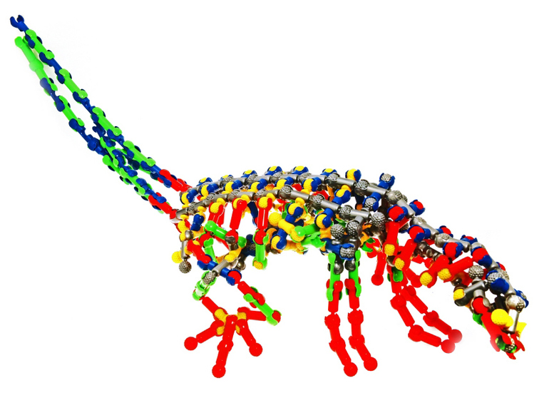 Защелкиваясь, детали конструктора формируют подвижные «суставы», позволяющие ребенку безгранично фантазировать с моделями: от динозавров и редких животных до инопланетян и цепи ДНК.