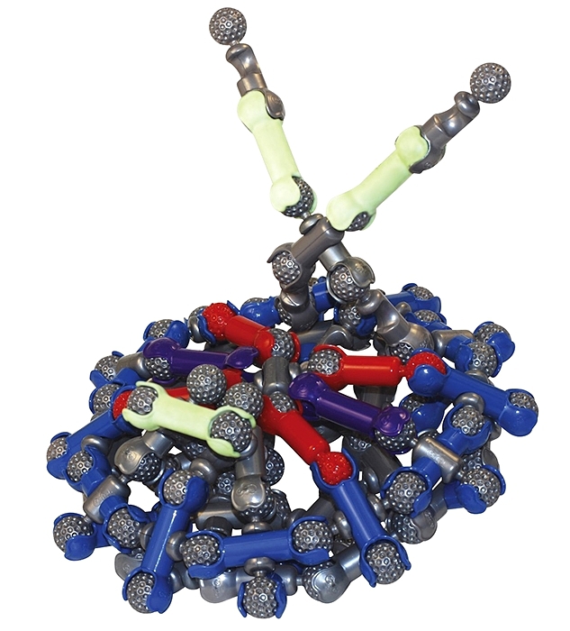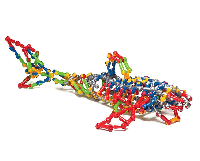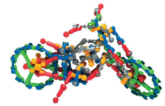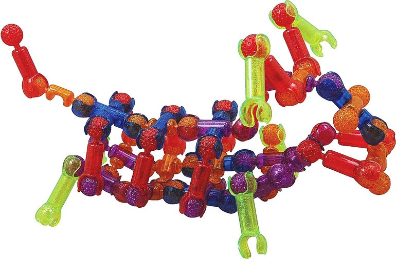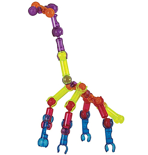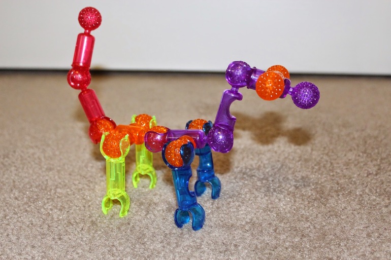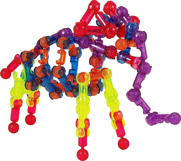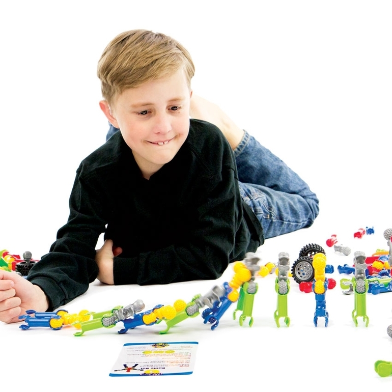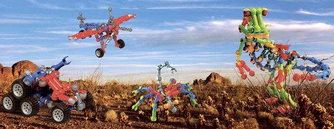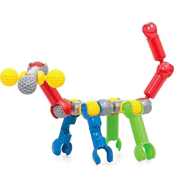 Защелкиваясь, детали конструктора формируют подвижные «суставы», позволяющие ребенку безгранично фантазировать с моделями: от динозавров и редких животных до инопланетян и цепи ДНК.