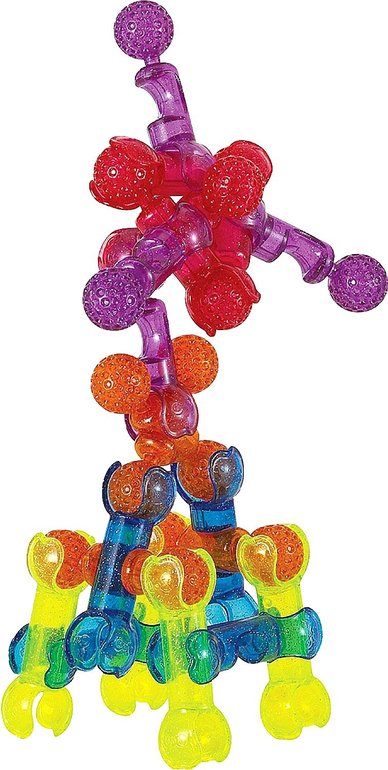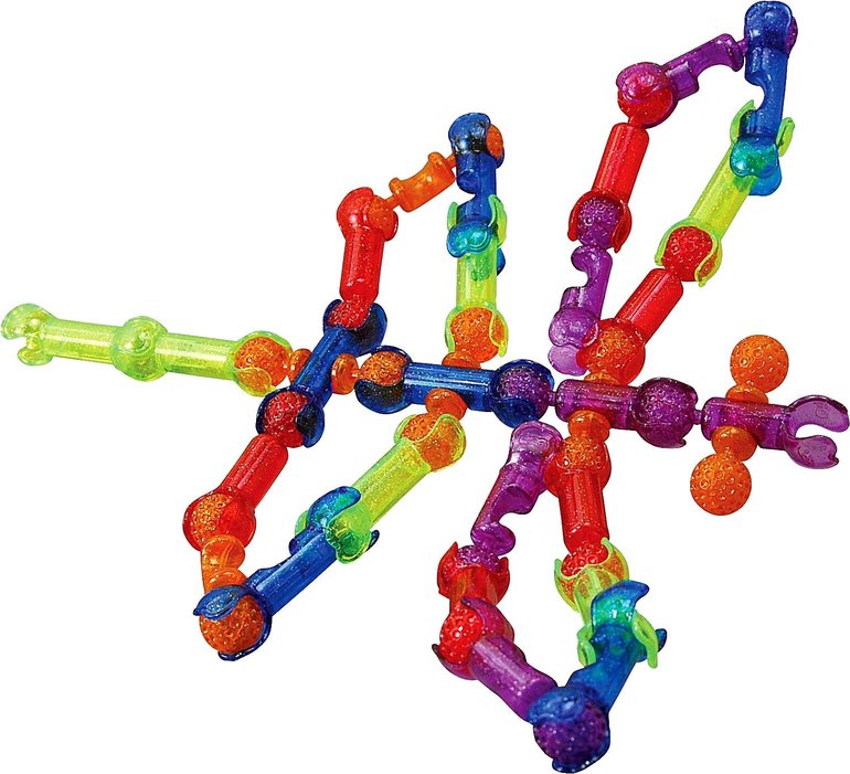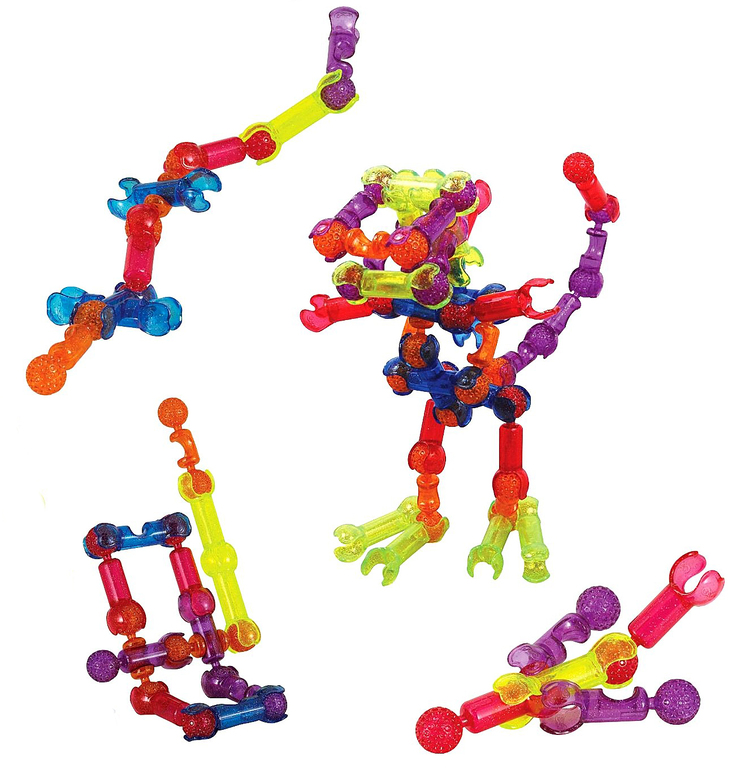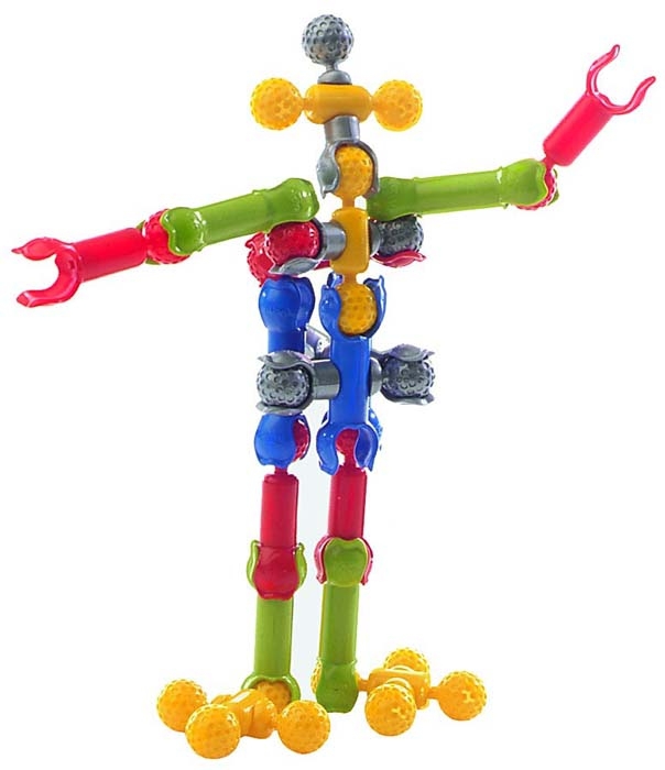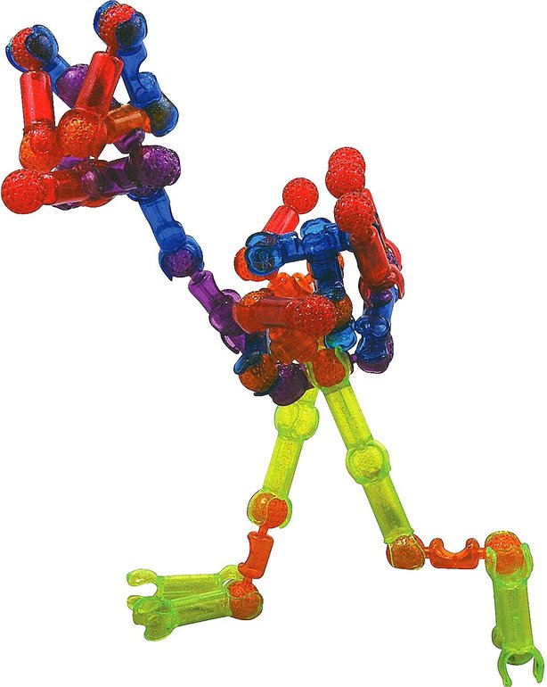 Соединять детали можно несколькими способами - щелчком, надавливанием и сжатием. Причем соединения могут получаться жесткими или подвижными. Жесткие создают прочный каркас, благодаря которому собранные модели становятся похожими на различные предметы: человечков, животных, машинки, технику и так далее. А подвижные соединения делают эти модели «живыми»: они могут двигаться и легко менять свою форму, а значит, ими можно не только любоваться, но и играть!