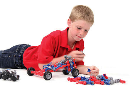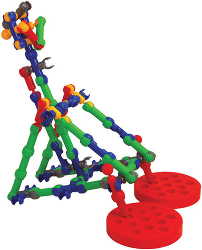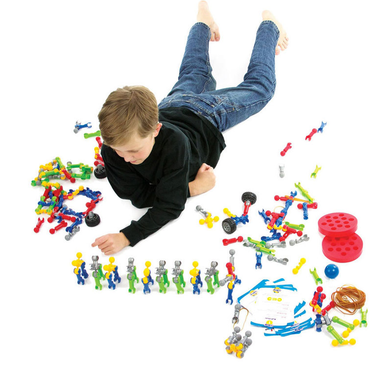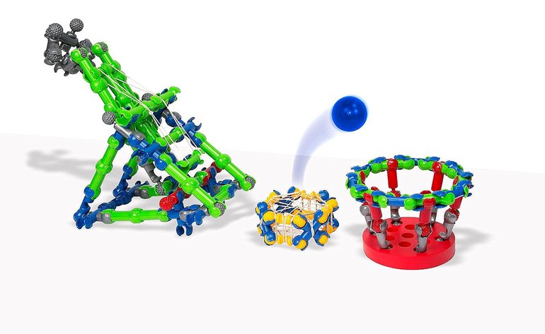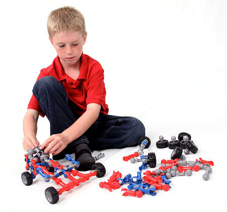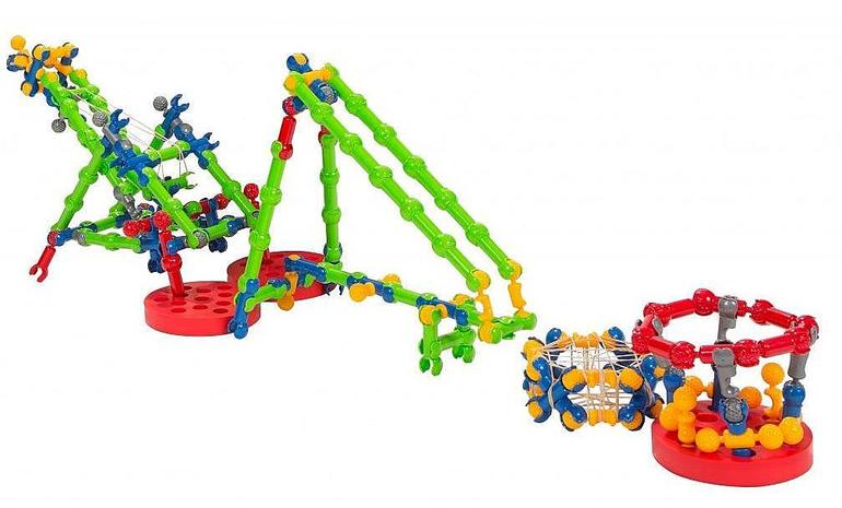 С помощью такого набора ребенок сможет собрать бесконечное количество новых игрушек, которые будут двигаться - подниматься, опускаться, сгибаться. Набор дополнен пружинящими и резиновыми деталями, колесами и мячиком, с помощью которых можно создавать разнообразные катапульты, мини-батуты, автомобили, катапульты на колесах и множество других устройств, которые только можно себе вообразить.
