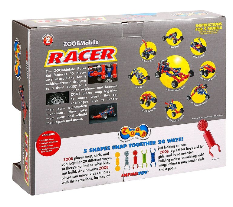 Набор содержит: 37 деталь Zoob и 2 книжечки с пошаговыми инструкциями для создания 9 моделей машин.