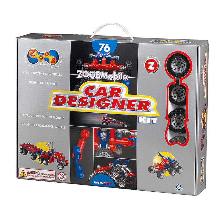 Набор, состоящий из 76 классических деталей ZOOB и 12 колес, таит в себе большой потенциал для юных фантазеров. Теперь можно освоить азы машиностроения, руководствуясь красочными инструкциями, а затем изобрести новые шедевры на колесах. Уже на примере нескольких моделей, предложенных производителем видно насколько они разнообразны благодаря тому, что колеса абсолютно независимы и оснащены подвижным ZOOB-креплением. Ваш ребенок обязательно оценит возможности такого конструктора и полюбит его.
