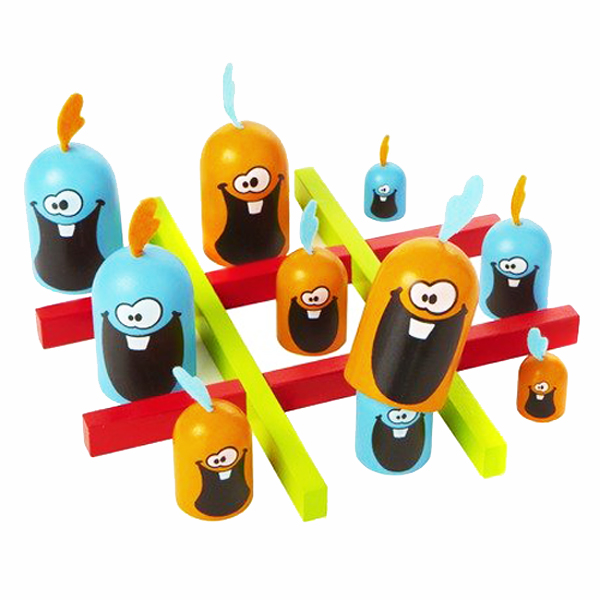 Игра содержит: 6 голубых и 6 оранжевых пластиковых фигурок, 4 перекладины для создания игрового поля, коробка, правила игры.