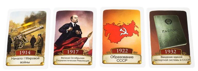 Игра содержит: 110 двусторонних карт с изображением события и его названием (дата создания указывается только на одной из сторон), правила игры на русском языке, коробка.