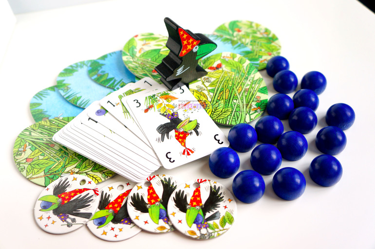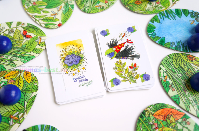 - 12 карт с цифрами 1, 2 или 3, а также 4 карты кражи (карта, где черника в клюве)