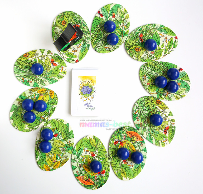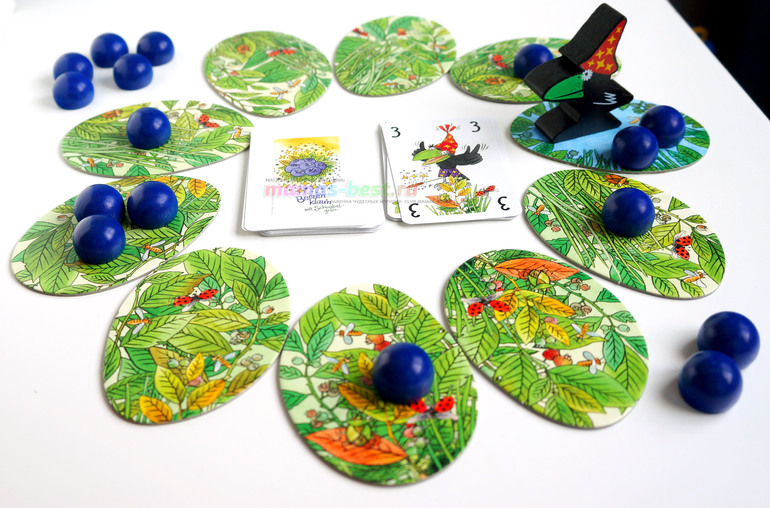 Для того чтобы начать игру, выкладываем 10 мини-полей в форме круга стороной с зарослями черники вверх.