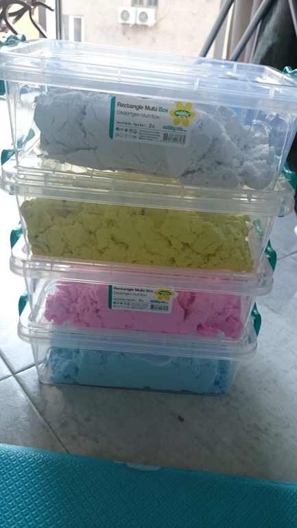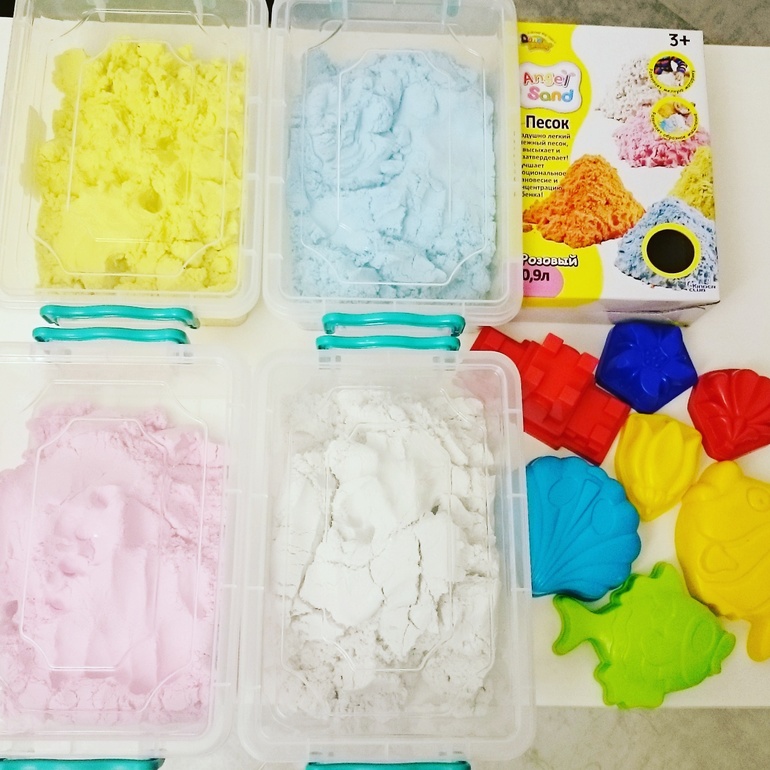 Нам 2.5, и мы уже примерно год являлись фанатами кинетического песка. В прошлом году я накупила разных цветов этого песочка и была от него в полном восторге. Ребенок ежедневно с ним играл. Мне казалось, что нет ничего круче кинетического песка!
