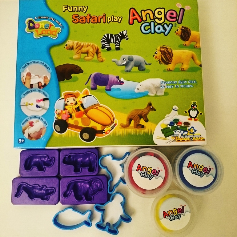 Теперь про глину :) Не была уверена, что она нам нужна, ибо уже год мы ежедневно играем с наборами Плейдо. Поначалу я тоже фанатела от материала Плейдо. Но если вы потрогаете и пощупаете глину, уверяю, Плейдо отодвинете на дальнюю полку!) Она мягчайшая и очень эластичная. Все-таки для малышовых пальчиков Плейдо твердоват. А глина - в самый раз! И глина тоже намного легче по весу и невесомее по ощущениям, чем Плейдо.