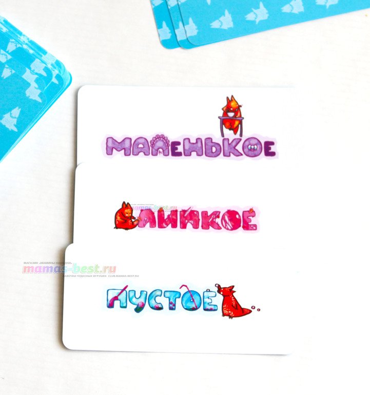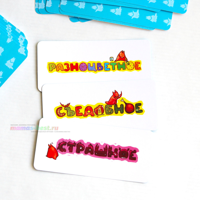- рискуем - открываем еще карту и придумываем существо, предмет или явление, обладающее всеми свойствами, которые мы сами выложили перед собой. Если придумать не получилось - все карты отправляем в сброс и передаем ход.