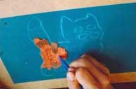 Наш рисунок мы заполняем пластилином, лучше брать восковой, он более мягкий.