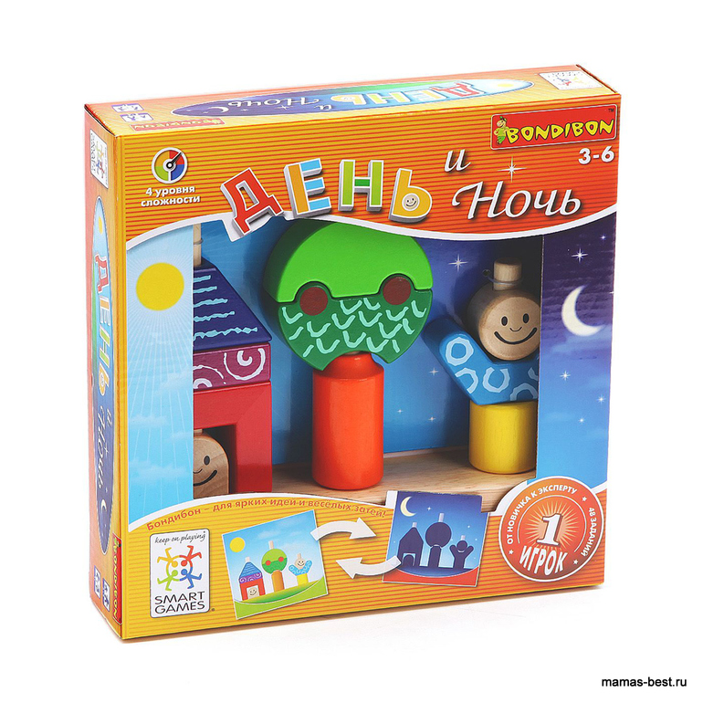 Логическая игра Bondibon Smartgames "День и Ночь" - занимательная игра для малышей от 3 до 6 лет. Она представляет собой яркий и необычный пейзаж из домика, дерева и человечка, состоящий из различных красочных деревянных элементов.