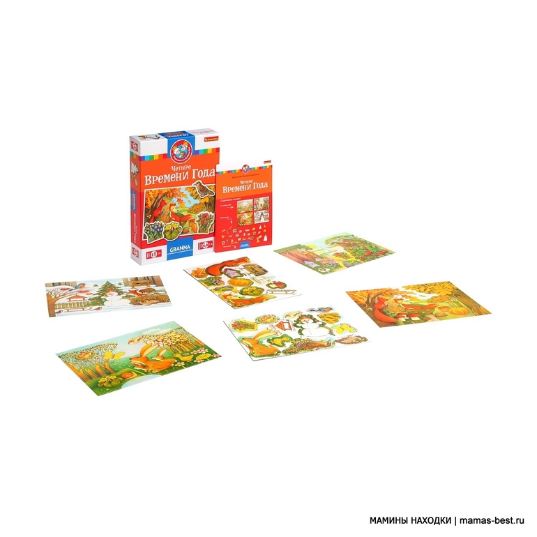В наборе 4 игровых поля из плотного картона и 24 карточки-фишки.