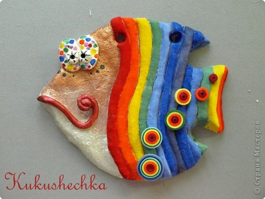 Сушить изделия из соленого теста можно как естественным путем, на свежем воздухе, так и в духовке. Первый вариант занимает очень много времени. В нашем случае рыбка пеклась в электрическом духовом шкафу при температуре 70 градусов. Время сушки индивидуально, зависит от толщины изделия.