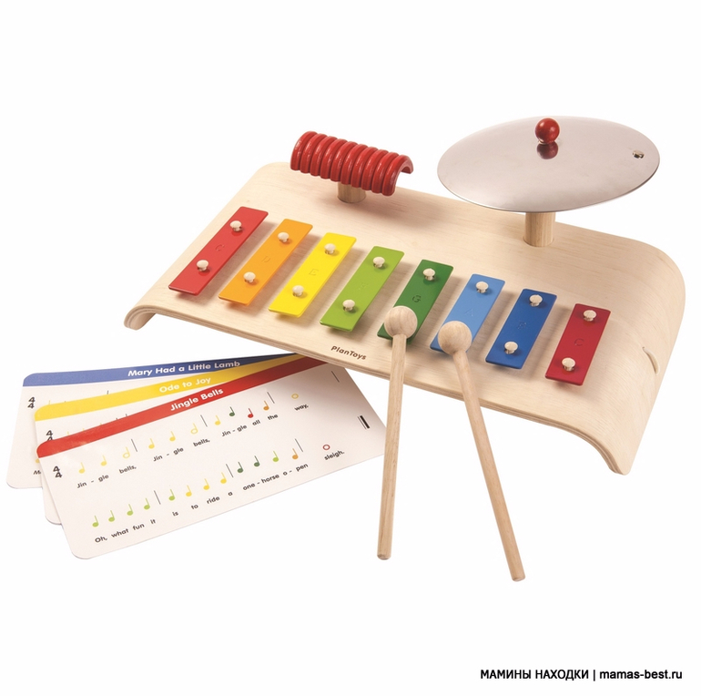 Малыш сможет самостоятельно устроить необычный концерт или сочинить свою первую мелодию. С помощью красочного набора для создания музыкальных произведений Plan Toys ребенок будет с большим удовольствием проводить время, развиваясь и получая отличное настроение.