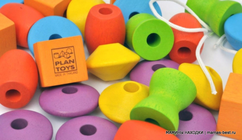 Деревянный набор "Собери бусы" от Plan Toys - отличное пособие для развития мелкой моторики маленьких ручек, для развития навыков усидчивости, изучения форм, цветов и счета.