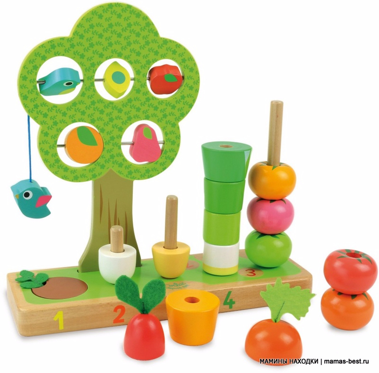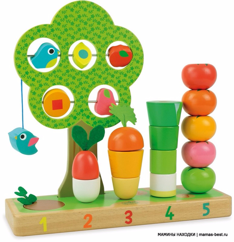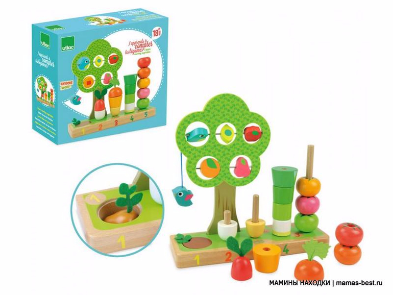 Игра "Огород" от французской компании Vilac - великолепный развивающий набор со множеством игровых элементов, который поможет малышу изучить цифры от 1 до 5.