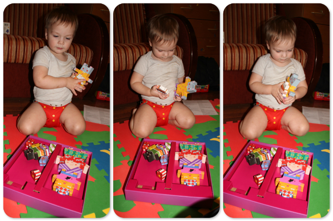 Кстати, коробку не так просто открыть - тут подцепить, там потянуть - вот тебе и еще одна тренировка. Первое время сын просто играл с фигурками по своему усмотрению...