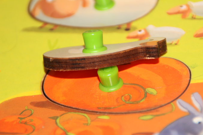 Идея пазла-перевертыша проста: есть похожие по форме, но разные по содержанию детали. И ребенку необходимо логически сопоставить, что морковка растет на огороде, а костюм фермера все-таки лучше представить к голове. Двухлетний ребенок справляется с заданием на раз, но даже для него находятся "заковыристые места": например, мой сын упорно не хочет соглашаться с тем фактом, что утка сидит на заборе. Вот птичка она и жить ей на дереве, а груша? Ну, пусть растет тогда на заборе, раз на дереве ей места не нашлось :)