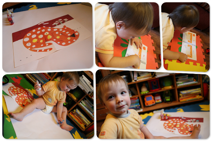 Предистория: Рисование и творчество неотъемлимая часть ннаших с сыном будней. Мама псевдо-художник не упустит шанса лишний раз размалевать кусок обоев, очередную коробку. Но обстоятельства накладывают свои ограничения и мы все чаще рисуем за пределами комнаты: в ванной или детском стульчике. В комнате предпочитаем акварель, карандаши, мелки и фломастеры. Но чем бы дитя не тешилось - захотелось нам пальчиковых красок, да таких, чтобы родительская комната не преобразилась вновь под кисточкой (пальчиками) юного Пикасо, да и кота жалко... последний раз долго его отмывали :)