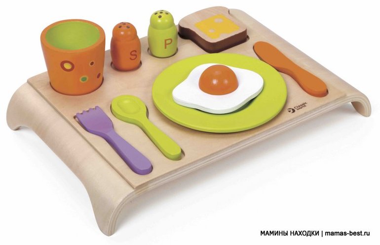 Занимательный набор подарит ребёнку увлекательную и неповторимую игру, ведь это и самый настоящий сортер - все приборы необходимо разложить чётко по силуэтам, и захватывающий "Весёлый завтрак" с помощью которого малыш сможет изучить основы этикета - правила сервировки стола и познакомиться с новыми предметами.