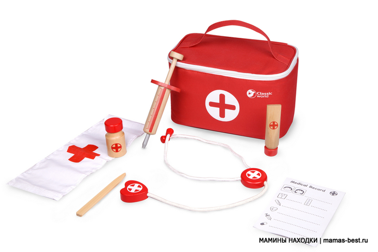 Игровой набор доктора интересует детей с раннего возраста, поэтому очень важно чтобы все составляющие материалов были безвредными и гипоаллергенными. Закругленные деревянные предметы набора обезопасят игры ребенка, делая лечение больных комфортным.