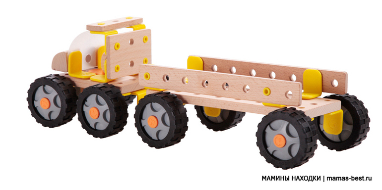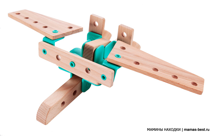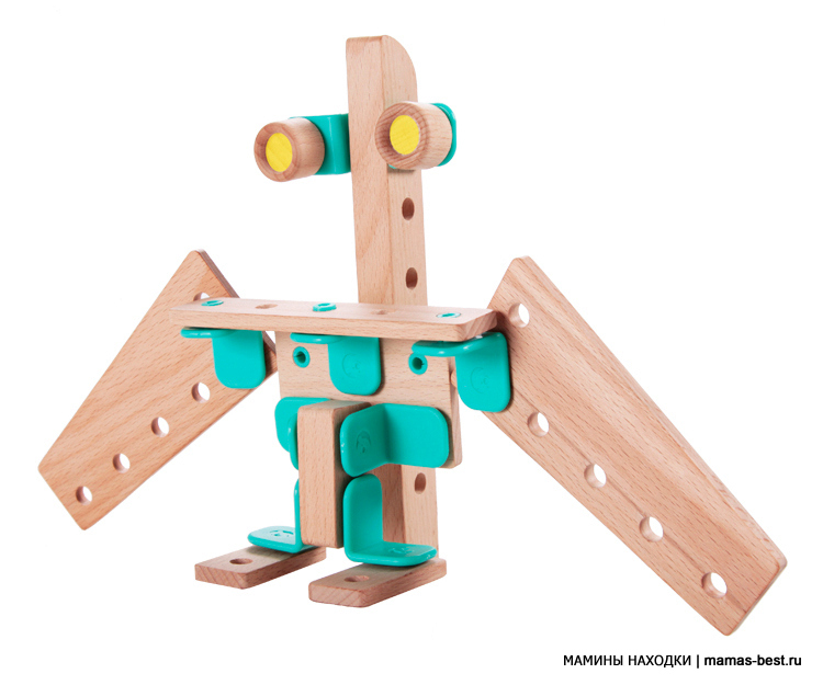 Все элементы конструктора выполнены из экологически чистого дерева и окрашены безопасными красками.