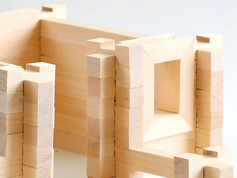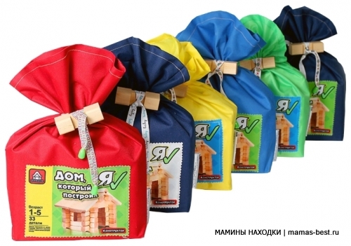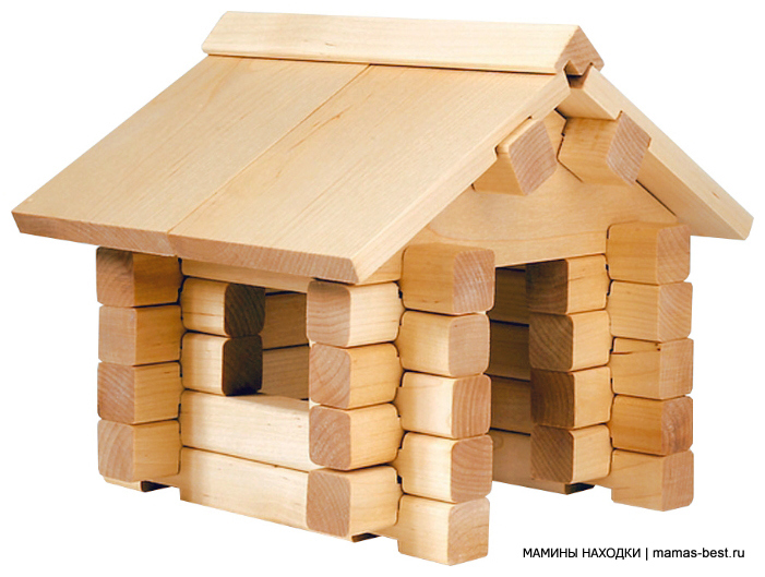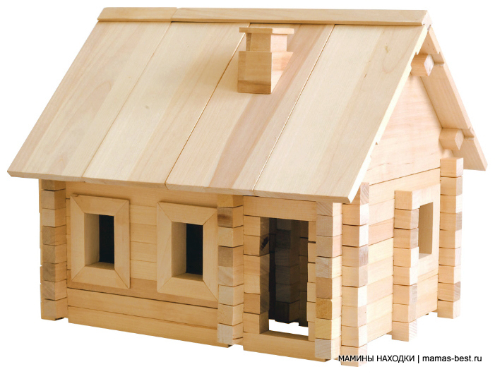 Построенные ребенком домики выглядят как настоящие: с окнами, с двускатной крышей, на которой установлен конек и даже труба с отверстием «для дыма». Конструктор собирается «паз-в-паз», без использования клея. Постройки легко как собирать, так и разбирать.