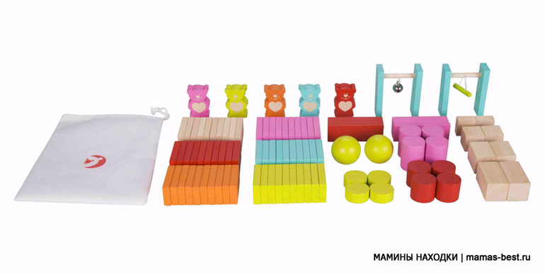 В наборе 51 яркая деревянная деталь, дидактический материал - карточки с заданиями (10 шт) и мешочек для хранения. Собирайте конструкции по инструкции или дайте волю фантазии. Ведь возможности данного конструктора безграничны!