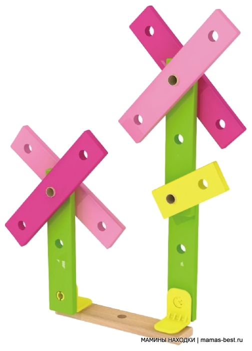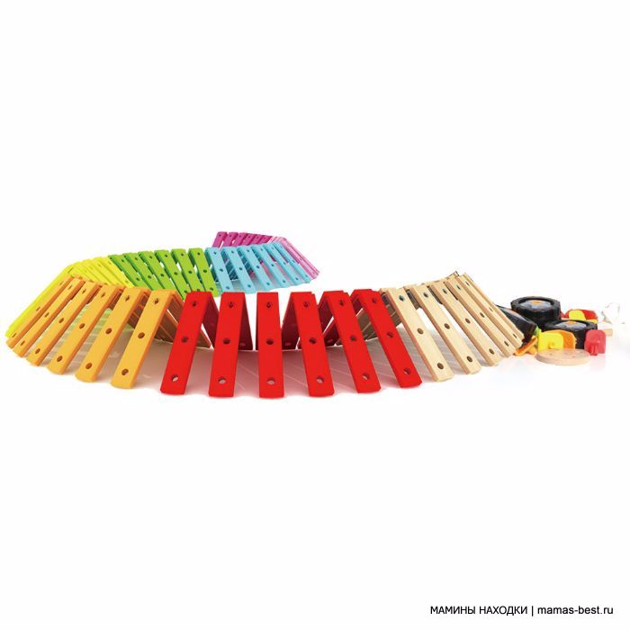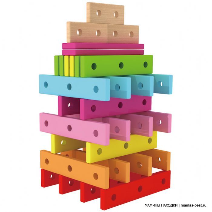 Конструктор отлично развивает мелкую моторику, логику, визуальные и сенсорные навыки. Все детали выполнены из экологически чистого дерева и вручную окрашены безопасными красками.