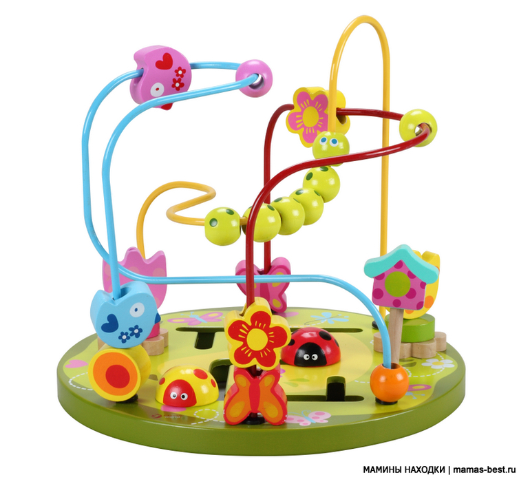 Красивая игрушка с яркими фигурками и элементами надолго привлекает внимание детей. Детям нравится перекатывать бусины и фигуры по изогнутым в разных плоскостях проволокам. Во время игры ребенок учится анализировать: как сделать так, чтобы фигурка с одного конца лабиринта переместилась на другой, чтобы нанизанные на проволоку детали не столкнулись между собой. Перекатывая фигурки по проволоке, ребенок развивает пространственное мышление и мелкую моторику. Яркая расцветка игрушки будет способствовать развитию зрения и цветовосприятия малыша.
