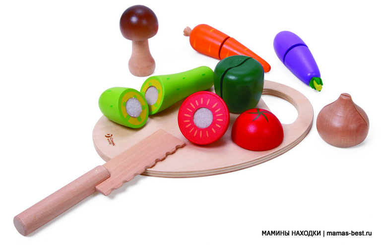 Замечательный игровой набор с овощами, разделочной доской и ножиком поможет вашему малышу придумать много интересных игр.