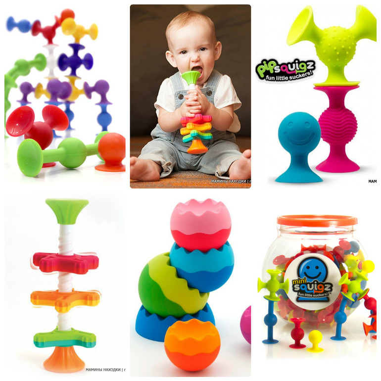 Интересные, яркие, веселые новиночки от компании Fat Brain Toys! Креативные игрушки, которые меняют привычный взгляд на развивающие игры! Пирамидка из полусфер или вращающаяся, которую можно грызть или конструктор, который можно клеить на лоб...