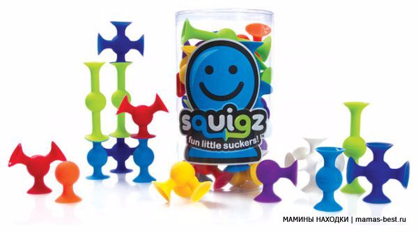 Конструктор "Squigz Starter Set" от Fat Brain Toys - это оригинальный американский конструктор-присоска, стартовый набор из 24 деталей.