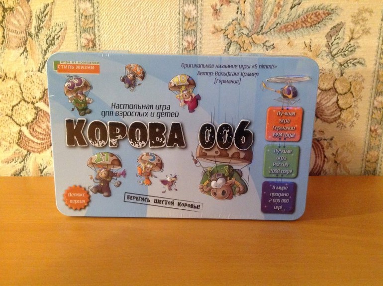 Ну что, отправимся на задание? Итак, правила игры очень просты, каждому игроку выдается по 10 карт из колоды, еще 4 карты выкладываются лицом вверх, именно с этих 4 карт и будут начинаться 4 ряда. Остальные карты колоды откладываются до следующего тура. Каждый ход все игроки выбирают по одному агенту из своего стада и одновременно выкладывают их на поле. Дальше эти карты раскладываются в ряды игрового поля по определенным правилам. Если же карта игрока оказалась шестой в ряду, то участник забирает все карты из этого ряда себе в штрафные очки, а корова 006 (шестая карта) становится первой. Чем больше штрафных очков, тем меньше вероятность выигрыша.