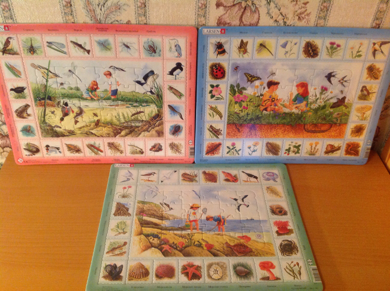 4 - и пазлики для обоих деток. "Поле", "Пруд", "Побережье".