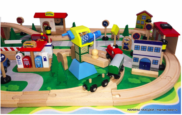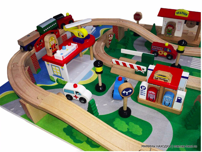 Постройте железную дорогу прямо у себя в комнате! Красивый сюжетный конструктор из натурального дерева, окрашен безопасными детскими красками в яркие насыщенные цвета.