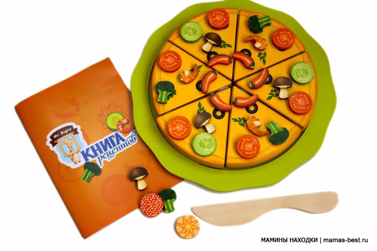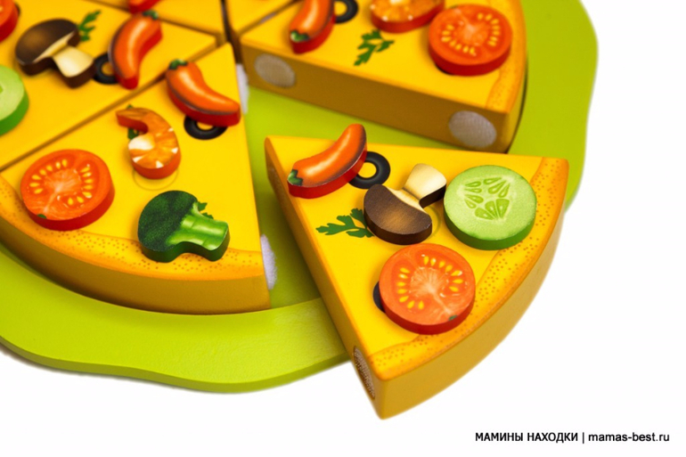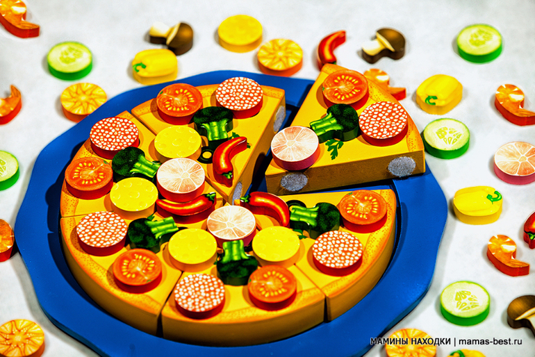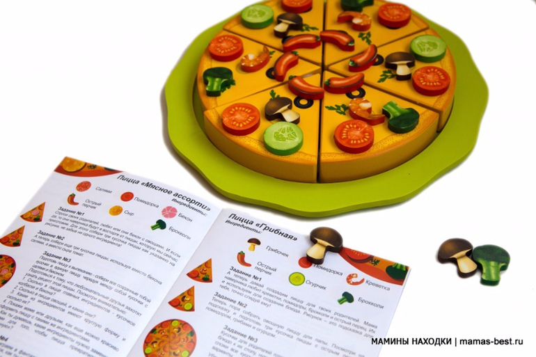 Кусочки бекона и брокколи, креветки и помидорки, сыр и перец, а также массу других дополнительных деталей, оснащенных магнитом для крепления на «тесто», можно использовать не только для приготовления блюд, но и в качестве мозаики - в обучающих целях, помогая малышу развиваться, играя.