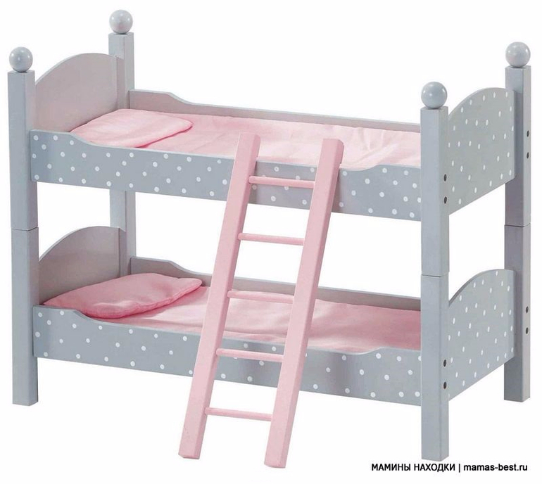 Все куклы - маленькие принцессы! Как и все принцессы они любят спать в красивых мягких кроватках. Деревянная двухъярусная кроватка "Мир Принцесс" создана специально для любимых кукол.